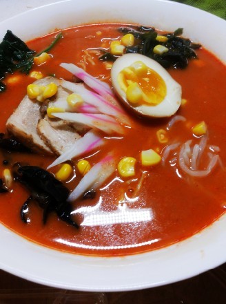 菜品描述:地狱拉面是一种著名的日本拉面。地狱拉面在日本拉面中可以算是一种比较辣的拉面,它选用新鲜豚骨、鸡骨熬制成汤底,爽口、劲道的拉面上铺着辣椒、紫菜、叉烧和豆芽,入口先是浓浓的醇香,然后舌头会渐渐感到一丝辣意,但决不会让人辣到流下眼泪。
